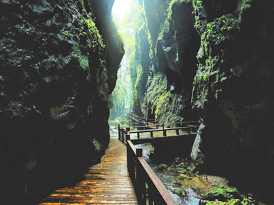 張家界朝陽地縫景區(qū)地處慈利縣朝陽境內(nèi),全長5公里,垂直深度近200米。朝陽地縫為趙家埡庫區(qū)流水經(jīng)幾億年沖刷而形成的100多米深的崖縫,兩崖最窄處僅一米多寬,景色集奇、秀、險、野、幽于一體。景區(qū)內(nèi)溪水清澈,空氣清新,冬暖夏涼,四季如春,是旅游觀光、避暑休閑、考察探險的好去處。